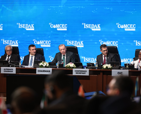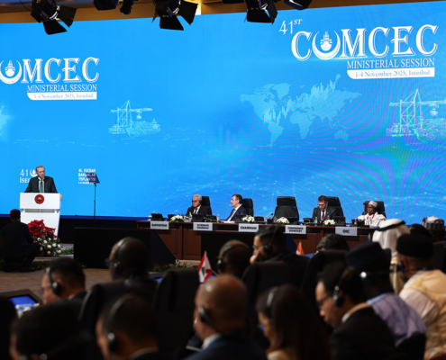 The 41st Ministerial Meeting of the COMCEC was held under the auspices of H.E. Recep Tayyip ERDOĞAN, President of the Republic of Türkiye, on 3-4 November 2025 with the participation of over 600 delegates, 28 of which were Ministers and Deputy Ministers from 46 OIC Member Countries, 4 Observer Countries and 25 international organizations. Throughout the meeting, 35 bilateral talks were carried out between Member Countries, international organizations and private sector representatives.
