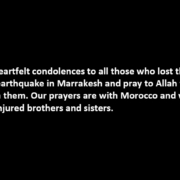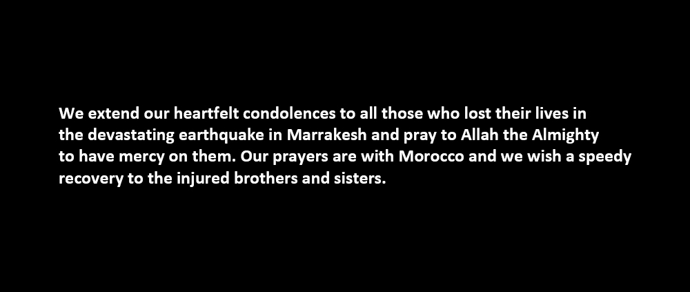 We extend our heartfelt condolences to all those who lost their lives in the devastating earthquake in Marrakesh and pray to Allah the Almighty to have mercy on them. Our prayers are with Morocco and we wish a speedy recovery to the injured brothers and sisters.