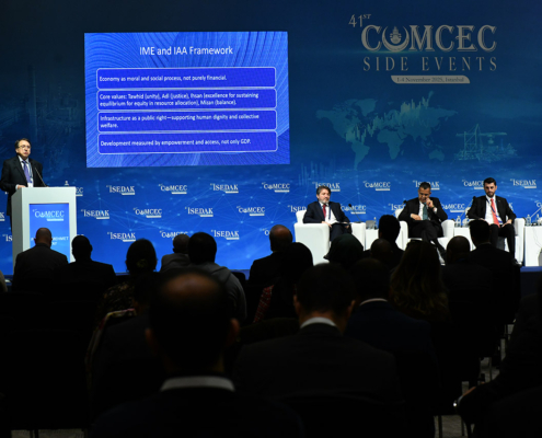 A special panel titled “Mobilizing Economic and Social Development Dynamics: The Case of Syrian Arab Rebublic” was held on November 4, 2025, during the 41st Session of the COMCEC Ministerial Meeting. The panel addressed the revitalization of socio-economic life in the reconstruction process of Syria from the perspective of the public, private sector, international organizations and civil society.